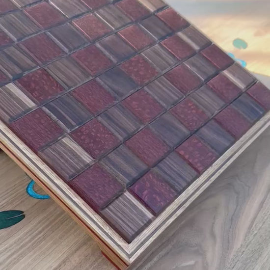 This handcrafted chess board from Blaze’s Handcrafted Woodworks is a true showpiece of craftsmanship and precision. The playing surface features a striking combination of lace wood and black walnut, creating a rich contrast that highlights the natural beauty of each grain. Framing the board is a specialty border of white oak, black walnut, and bloodwood, adding depth, warmth, and a touch of sophistication to the overall design.