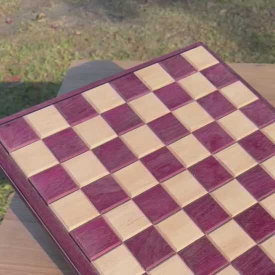 Purple Heart and Maple Wood with Specialty Border Chess Board